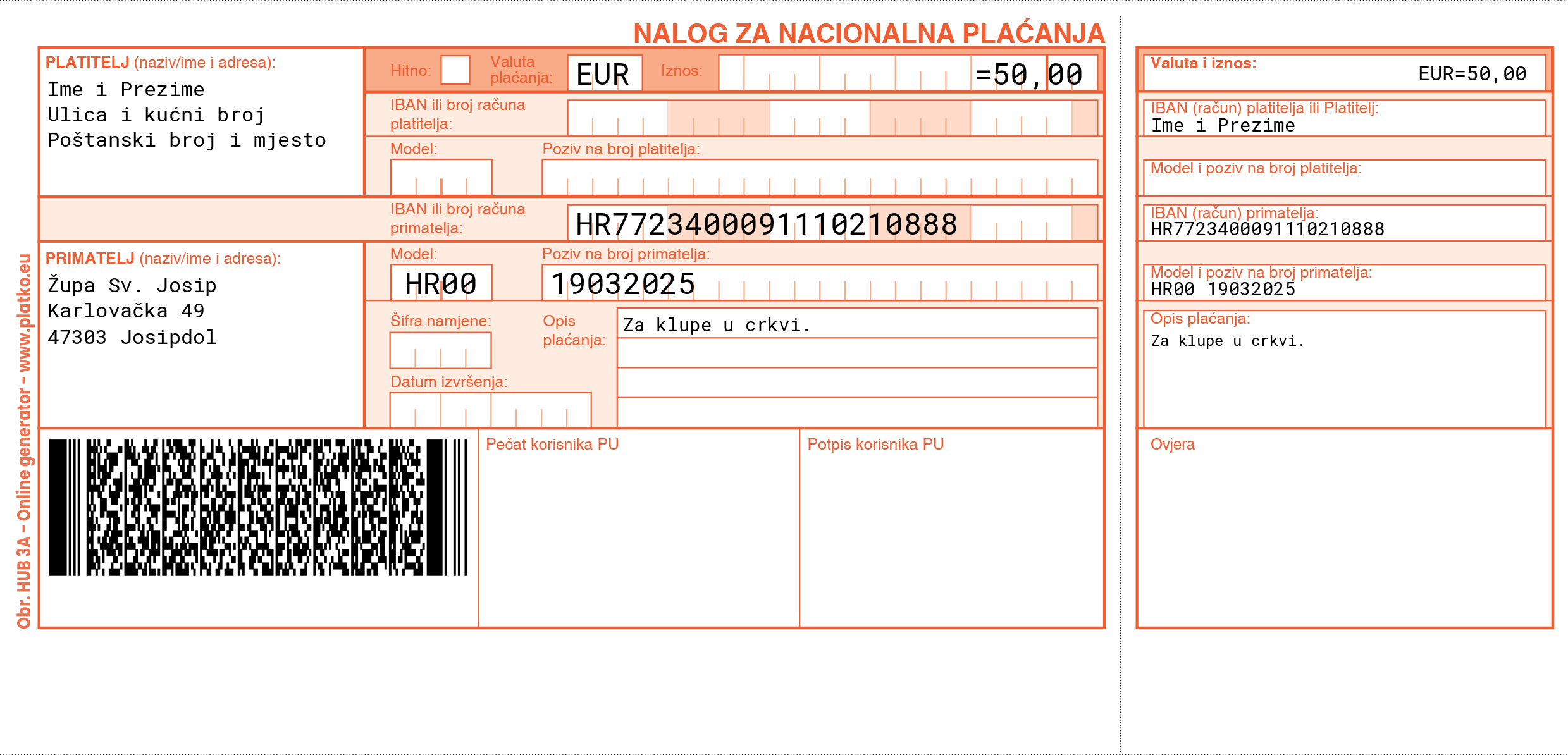 - uplata mobitelom tj. aplikacijom vaše banke skeniranjemm bar koda (postavljen ispod ove objave, također možete mijenjati iznos, na veći ili manji, samo neka je od srca)