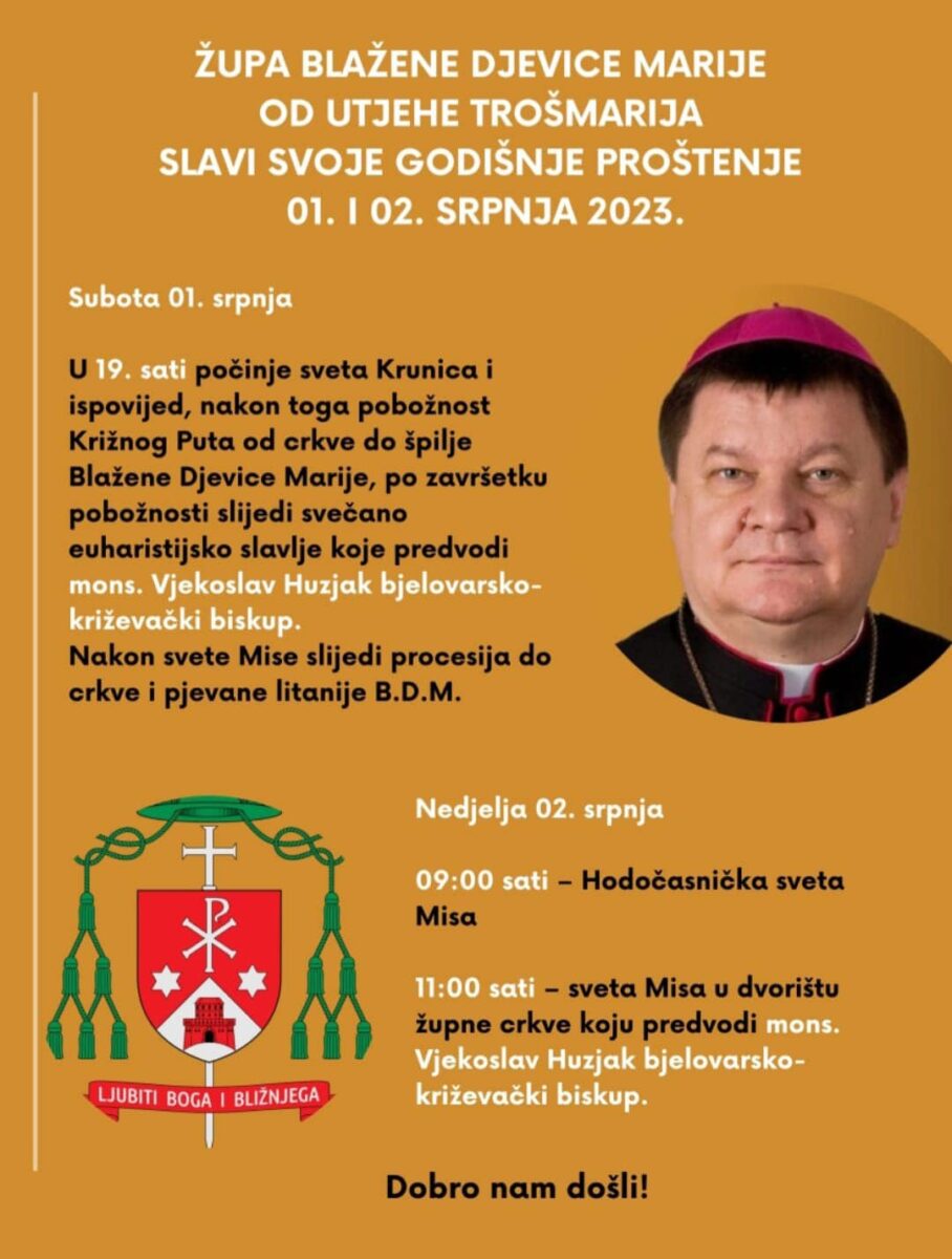 Danas je XII. nedjelja kroz godinu. U subotu je mlada misa u 11 sati u župi bl. Alojzija Stepinca koju slavi don Nikola Luketić koji je rodom iz te župe, tj. tamo je prebivao do odlaska u sjemenište, pa koji ste zainteresirani za mladu misu pođite na slavlje. U subotu je ujedno i proštenje u 19:00 u Trošmariji. Imate plakat na oglasnoj ploči. Kod nas će biti večernja misa u 18:30. U nedjelju je sv. Misa redovito u (9:30) 11 sati.