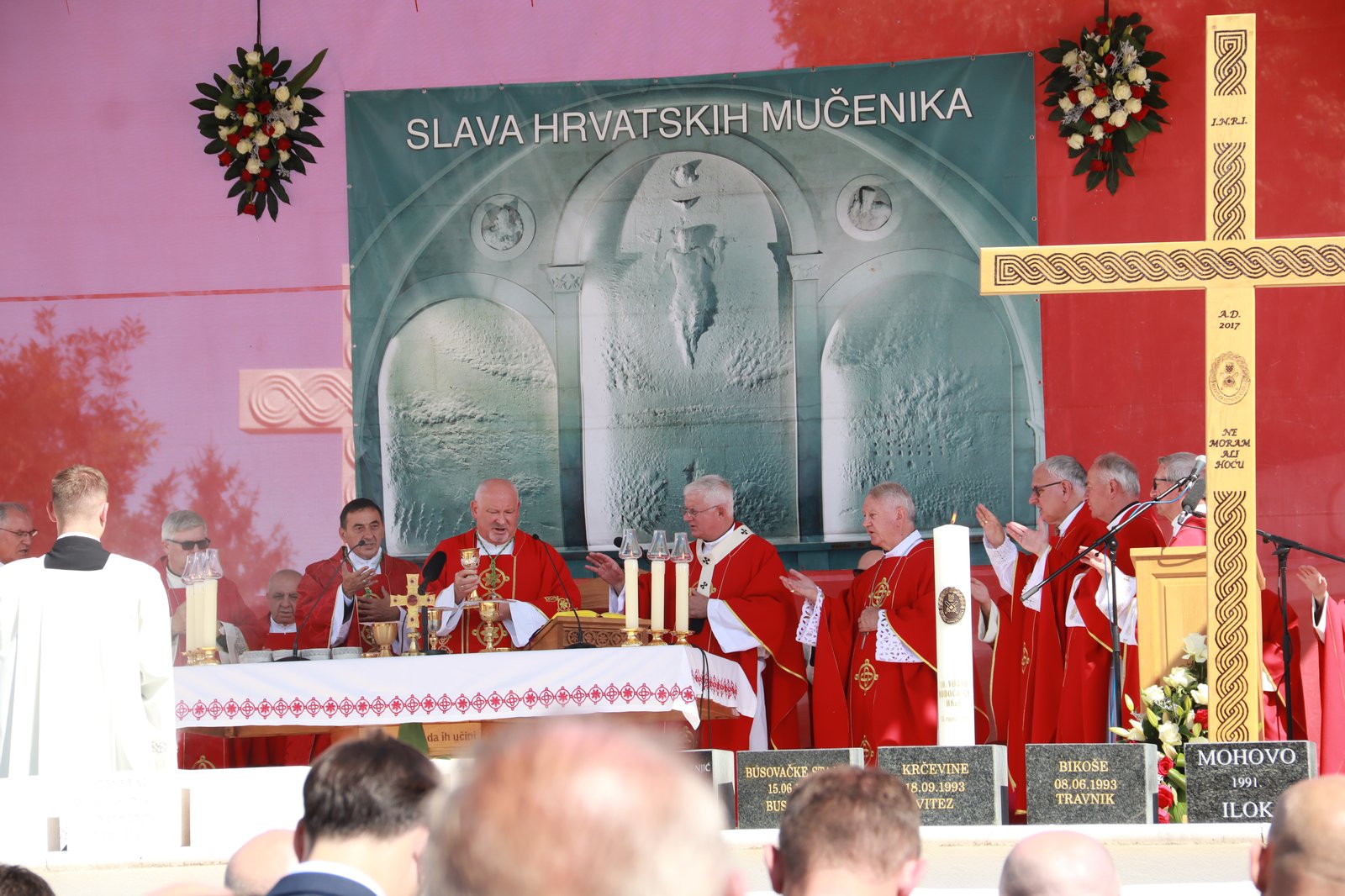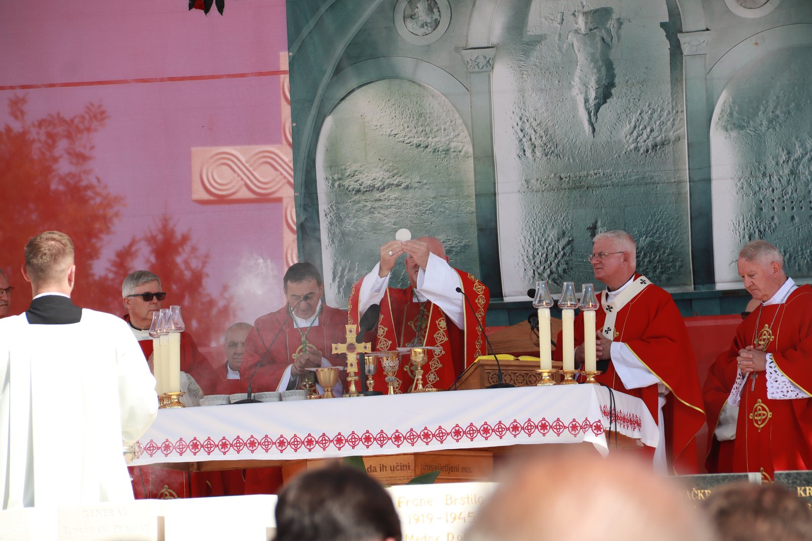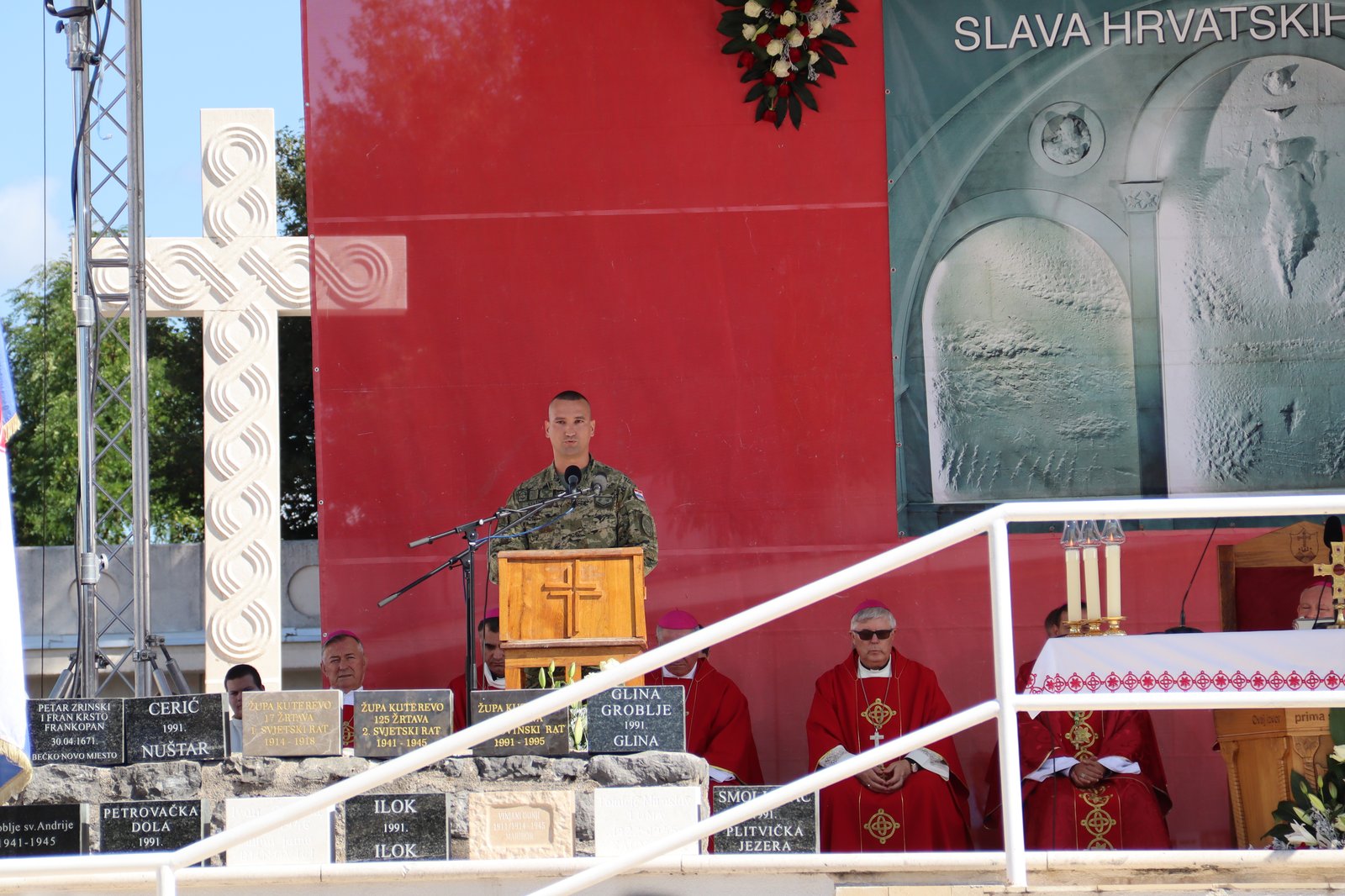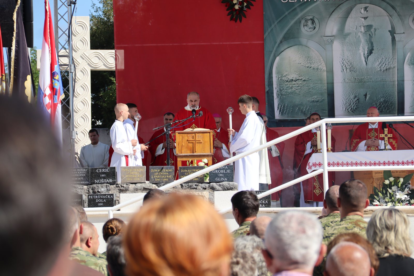 Biskup Ivica je u propovijedi istaknuo povijesne točke teških stradanja hrvatskog naroda pozivajući se na oltarni prikaz unutar crkve, djelo kipara Kuzme Kovačića, a to su: Krbavska bitka 1493. koja je bila koji kilometar dalje, zatim Blajburška tragedija i druge osvetničke egzekucije nakon dovršenog 2.svj,rata, te Vukovar 1991. i Domovinski rat. Cijela propovijed pročitajte OVDJE.