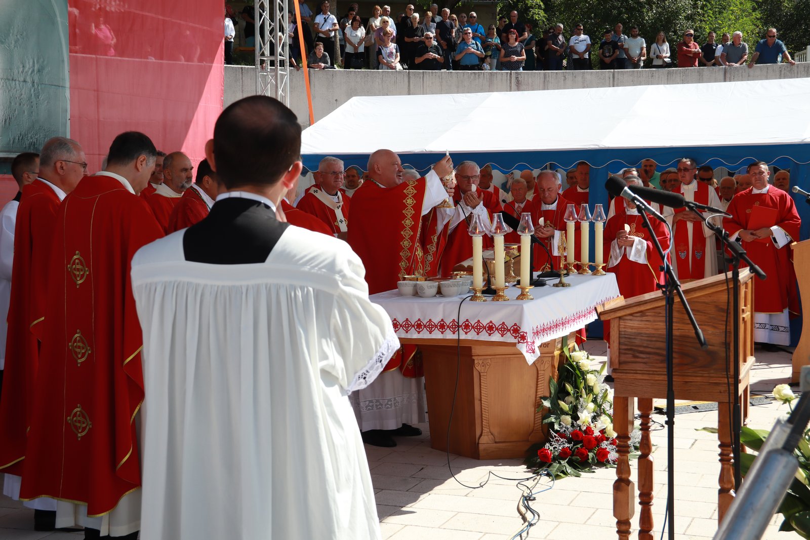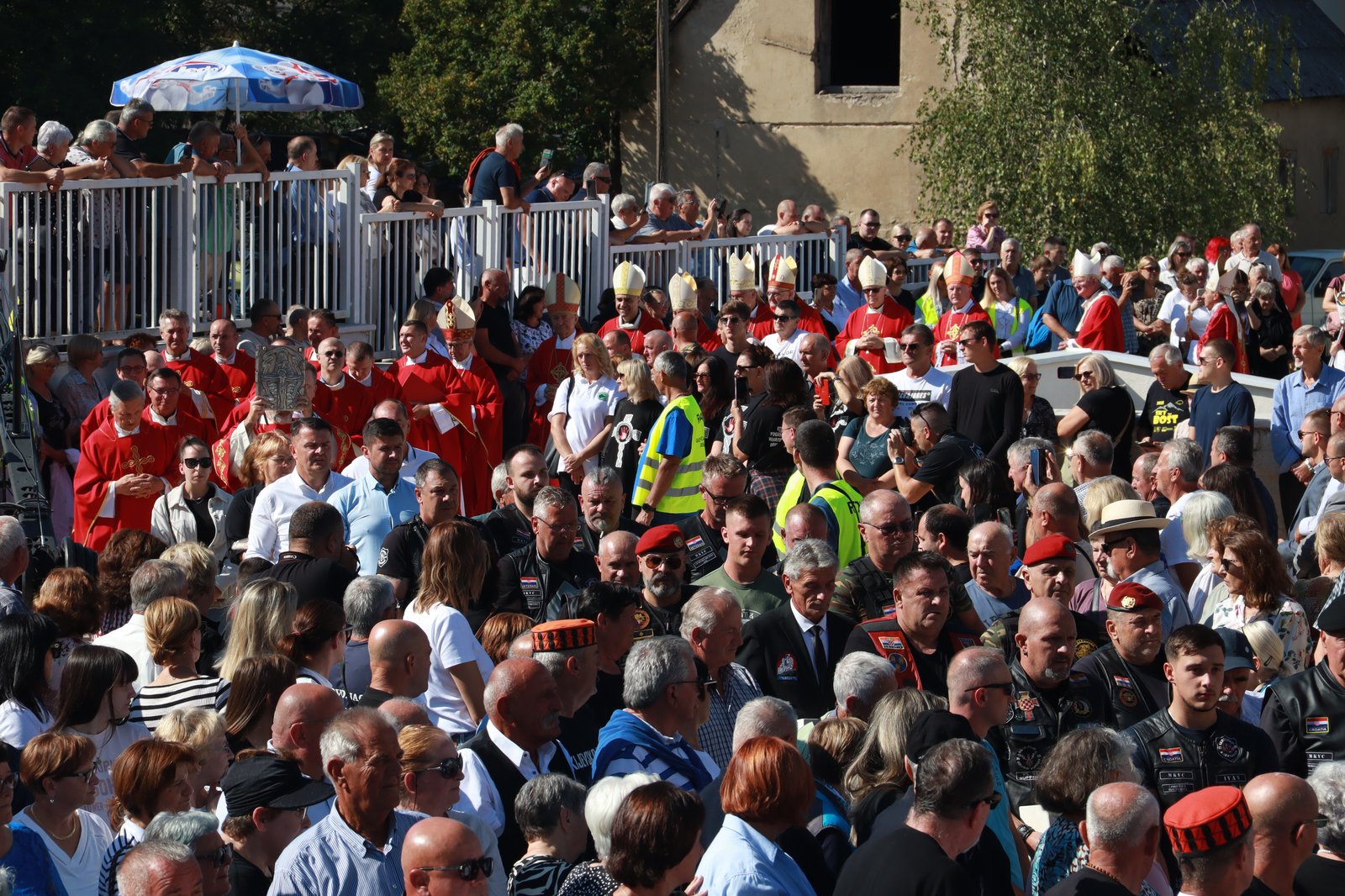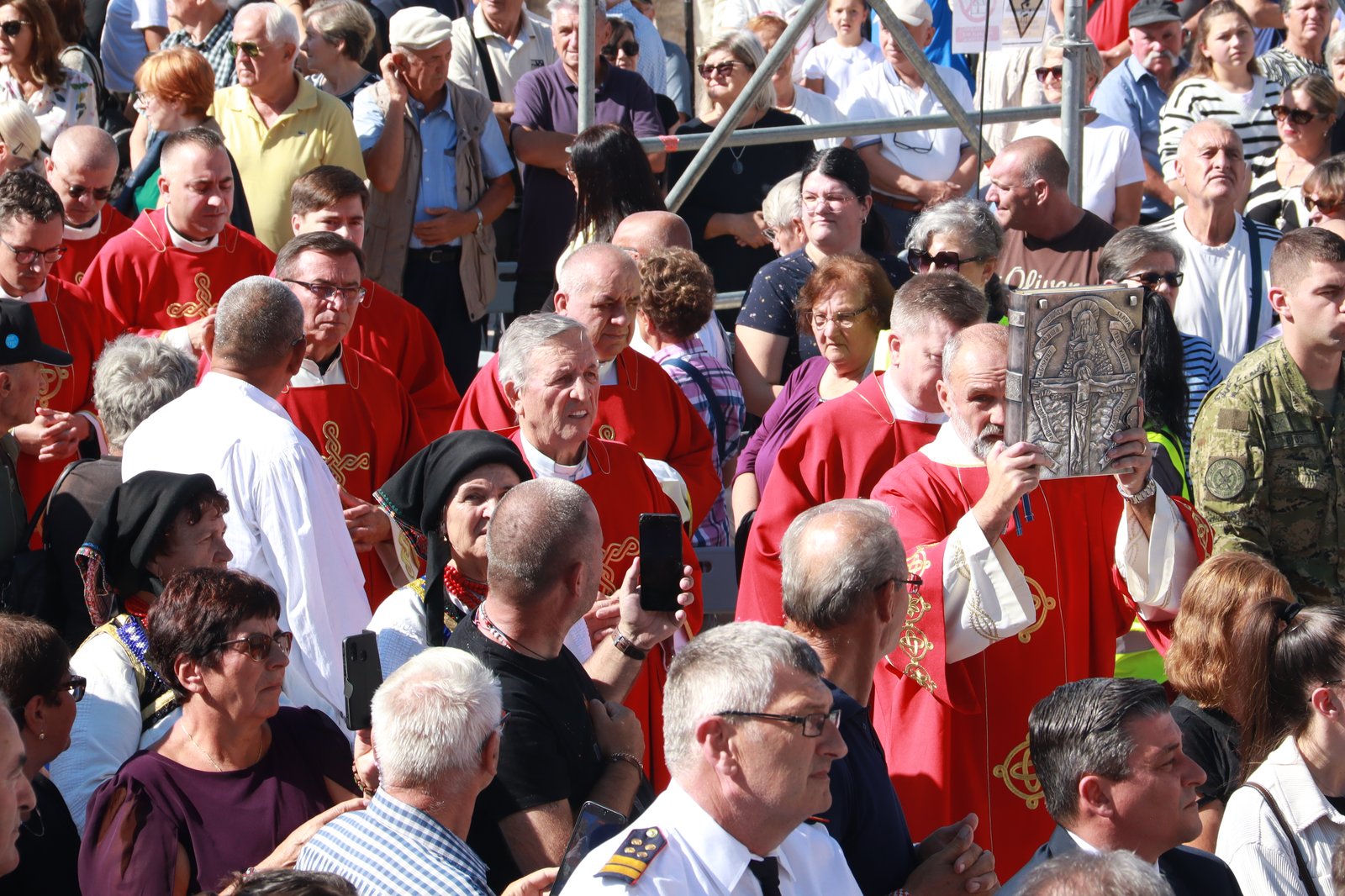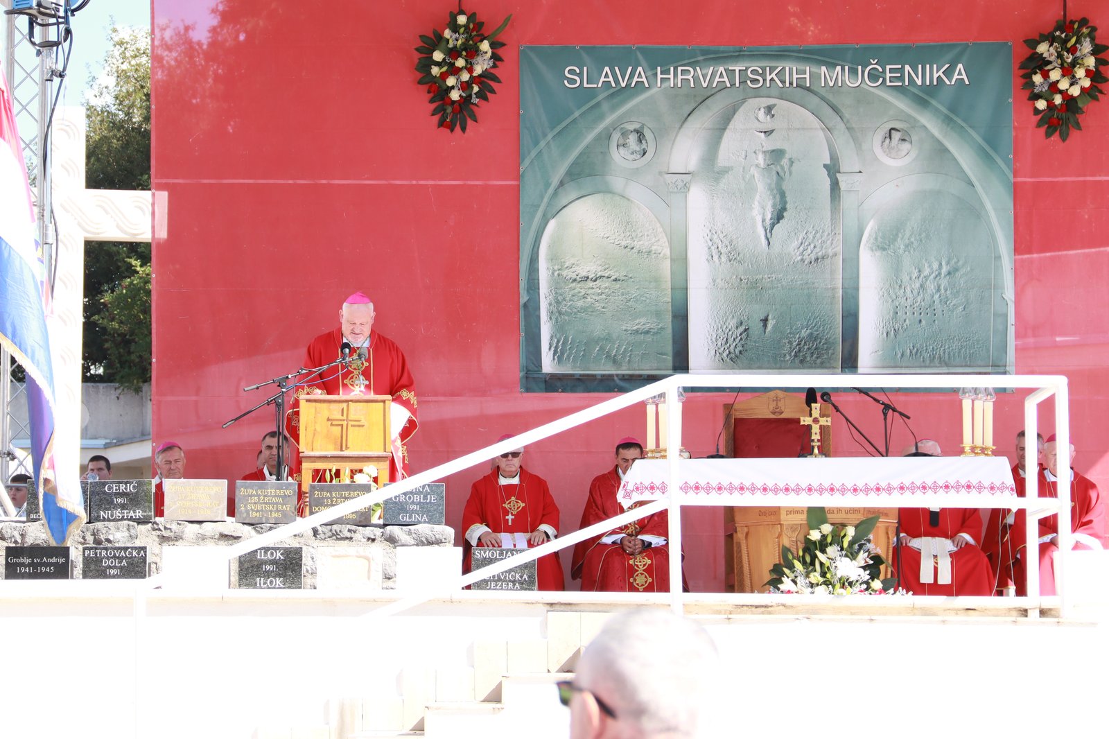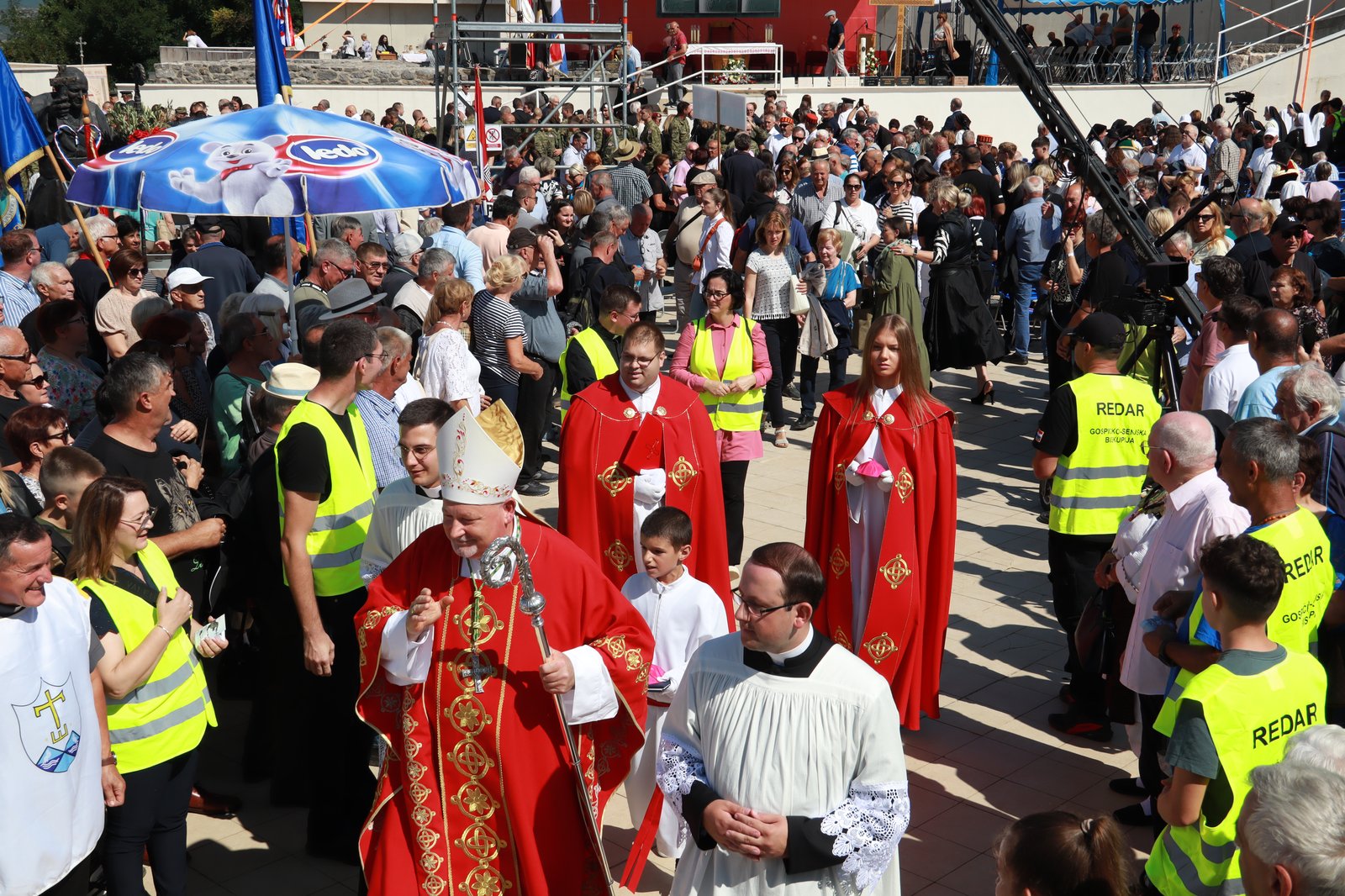 Biskup Ivica je u propovijedi istaknuo povijesne točke teških stradanja hrvatskog naroda pozivajući se na oltarni prikaz unutar crkve, djelo kipara Kuzme Kovačića, a to su: Krbavska bitka 1493. koja je bila koji kilometar dalje, zatim Blajburška tragedija i druge osvetničke egzekucije nakon dovršenog 2.svj,rata, te Vukovar 1991. i Domovinski rat. Cijela propovijed pročitajte OVDJE.