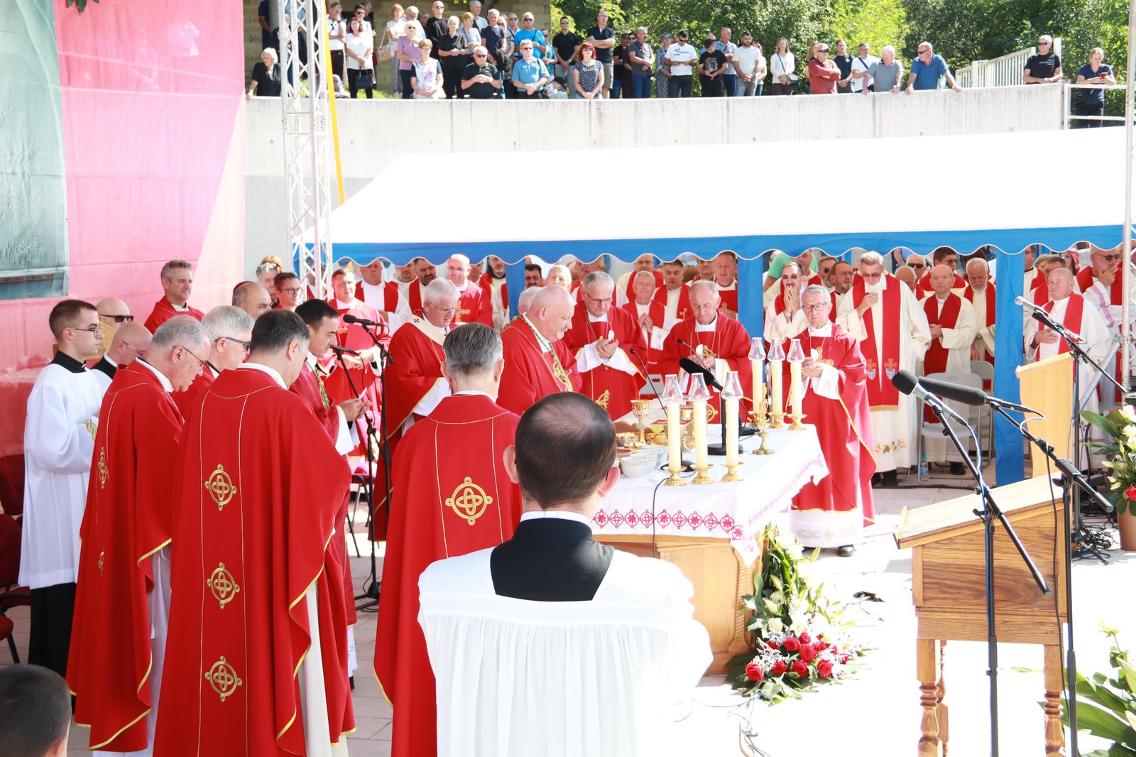 Misno slavlje je predvodio krčki biskup mons. Ivica Petanjak. Koncelebrirali su nadbiskupi riječki Mate Uzinić, splitsko-makarski Zdenko Križić i zadarski Milan Zgrablić te biskupi gospićko-senjski Marko Medo, šibenski Tomislav Rogić, porečki i pulski Ivan Štironja, hvarski Ranko Vidović, dubrovački Roko Glasnović, umirovljeni nad/biskupi Marin Barišić i Ivan Milovan, generalni vikar Vojnog ordinarijata vlč. Ilija Jakovljević, generalni tajnik HBK-a preč. Krunoslav Novak, provincijal hrvatskih kapucina fra Ante Barišić i brojni svećenici.