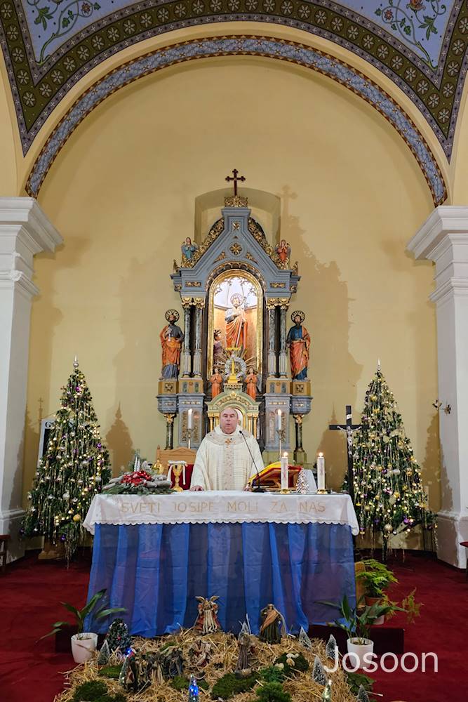 Misa na Božić bude najposjećenija, tako je bilo i danas. Župnik, vlč. Željko Blagus, nadahnuto je propovijedao i nije mu nedostajalo riječi u namjeri da povjerene mu župljane usmjeri, objasni i obrazloži nužnost promjena cijele zajednice na dobro, da se vidi da smo puni ovoga Isusa koji se danas rodio i tako bi nas Bog prepoznao kao svoju djecu. “Što Isusu darovati za današnji rođendan, za ovaj Božić?” – zapitao je župnik i nastavio: